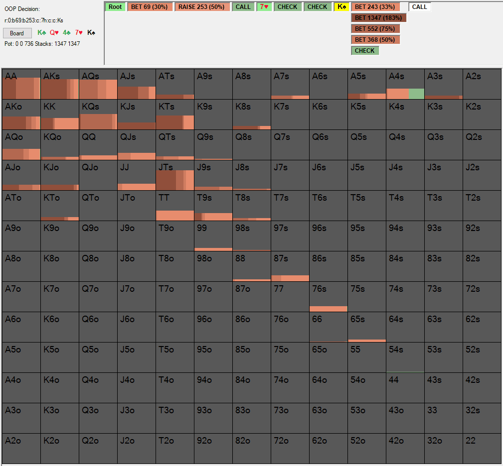 Вот наглядное представление GTO-защиты с точки зрения Кевина: