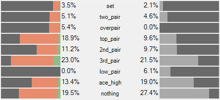 Более того, на этой конкретной текстуре менее трети диапазона Кевина состоит из неготовых рук, и только около 12% его рук не имеют пары или прямого дро к стриту и флешу.