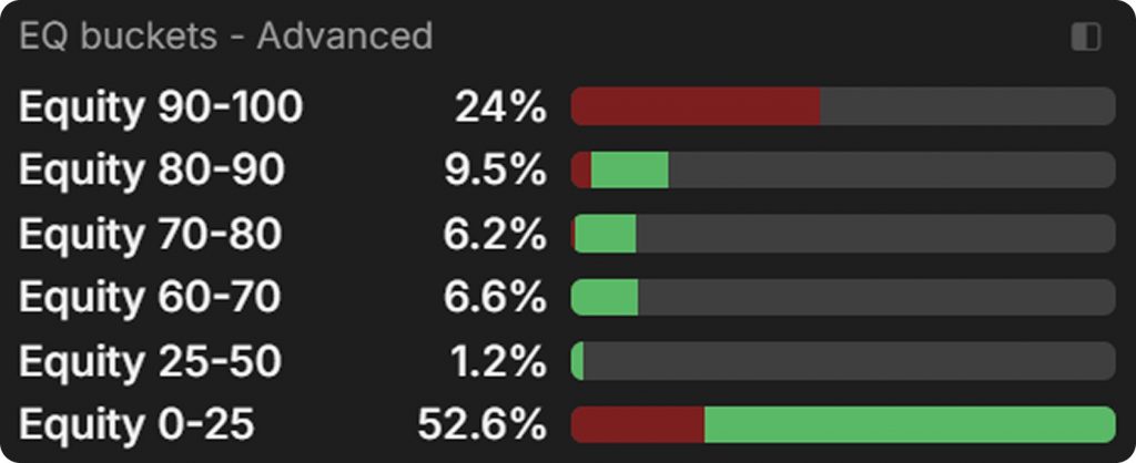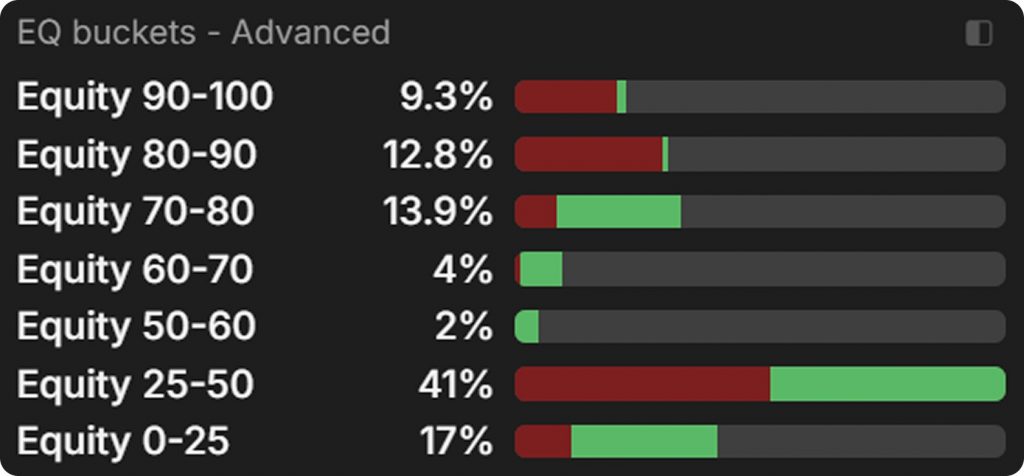 Стратегия трипл-баррелинга UTG — диапазон разбит по корзинам эквити: