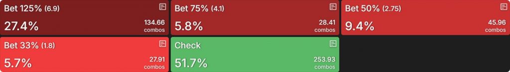 Заставляя солвер использовать лишь сайзинг овербета, мы получаем несколько поляризованную стратегию ставок.