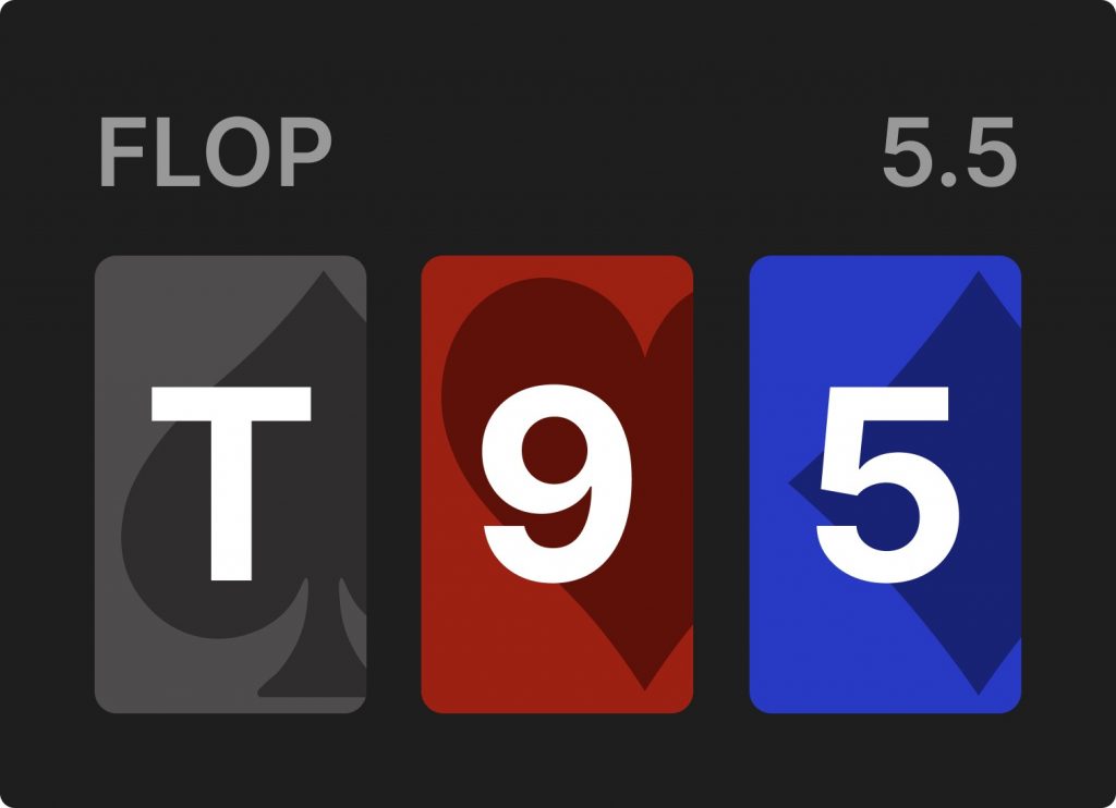 Однако T-9-5 радугой — это совершенно другая текстура, на которой руки вроде средней пары или топ-пары со слабым кикером уязвимы и имеют лучшие шансы на то, что их заколлируют худшие руки, если они сделают ставку.