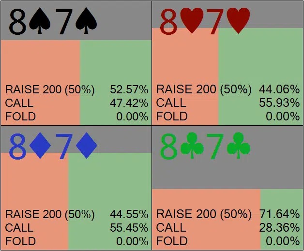 Натс (87s) часто, но не всегда, чек-рейзит. Главная причина в том, что эта рука неуязвима; даже если мы просто чек-коллим, мы все равно сможем вложить весь стек в центр стола посредством чек-пуша на ривере, если баттон сам не поставит олл-ин на терне. Слоуплей с этой рукой также имеет стратегическое преимущество: он отбивает у баттона желание пушить посредством трех баррелей с руками типа 7x. В противном случае это позволило бы баттону расширить свой диапазон блефа и сделать больше наших рук индифферентными, в конечном итоге позволяя баттону заполучить большую долю банка.