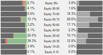 2x-терны — ваше распределение эквити слева, распределение эквити баттона справа.