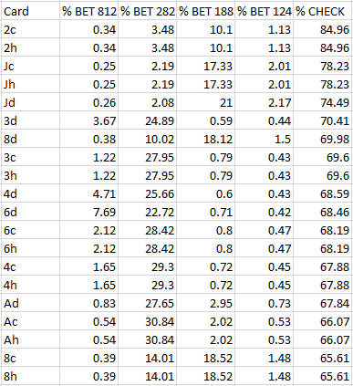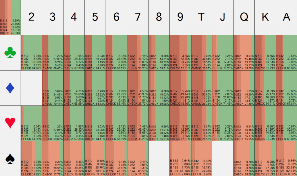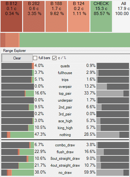 Наконец, давайте рассмотрим состав диапазона, который солвер использует для ставок на 8x-тернах: