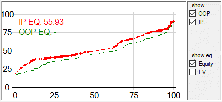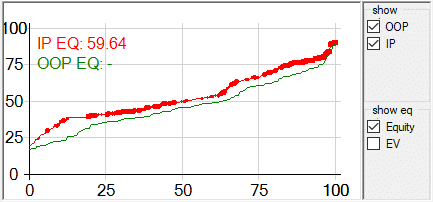 Первая диаграмма показывает эквити теоретически оптимального диапазона ставок против вашего диапазона. Вторая диаграмма представляет собой стратегию ставок с руками с высоким эквити от оппонента, который не склонен к риску.