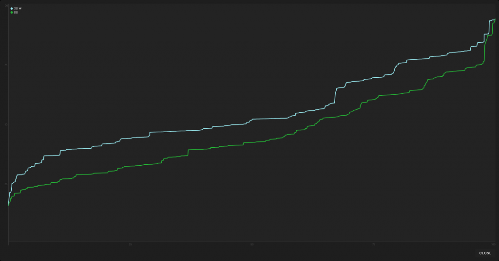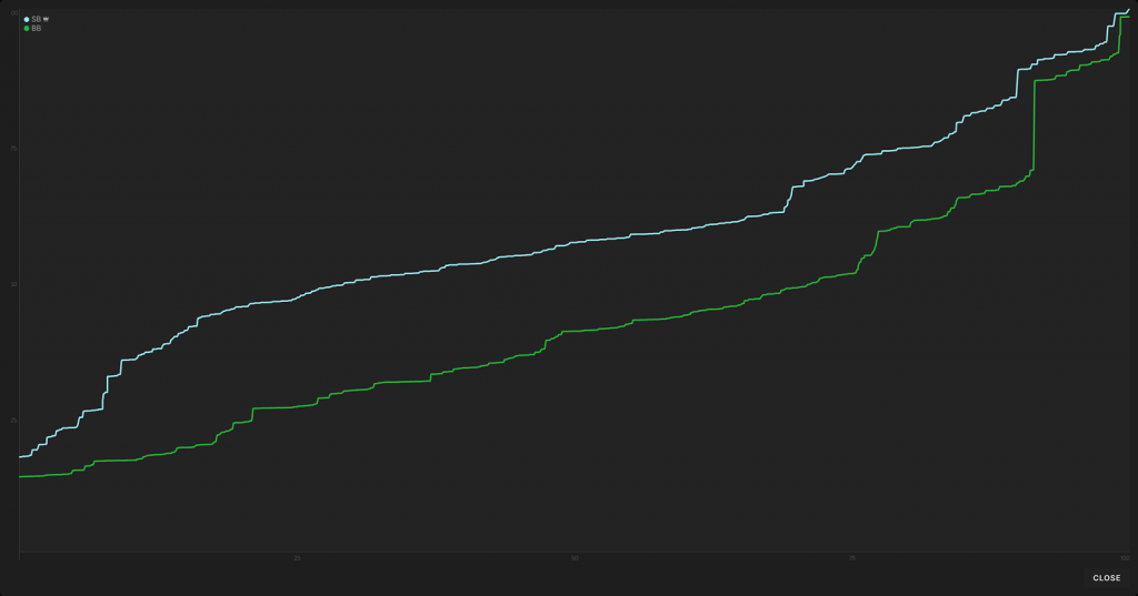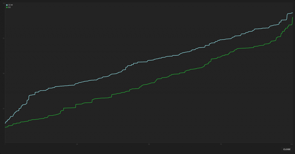 - У SB есть спектральное преимущество, ~58% эквити. У BB, соответственно, оставшиеся ~42% эквити.
