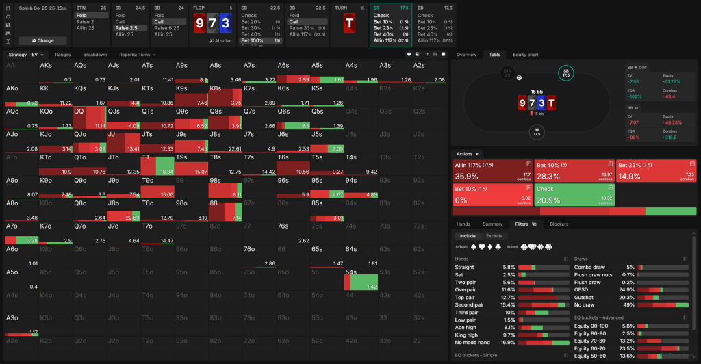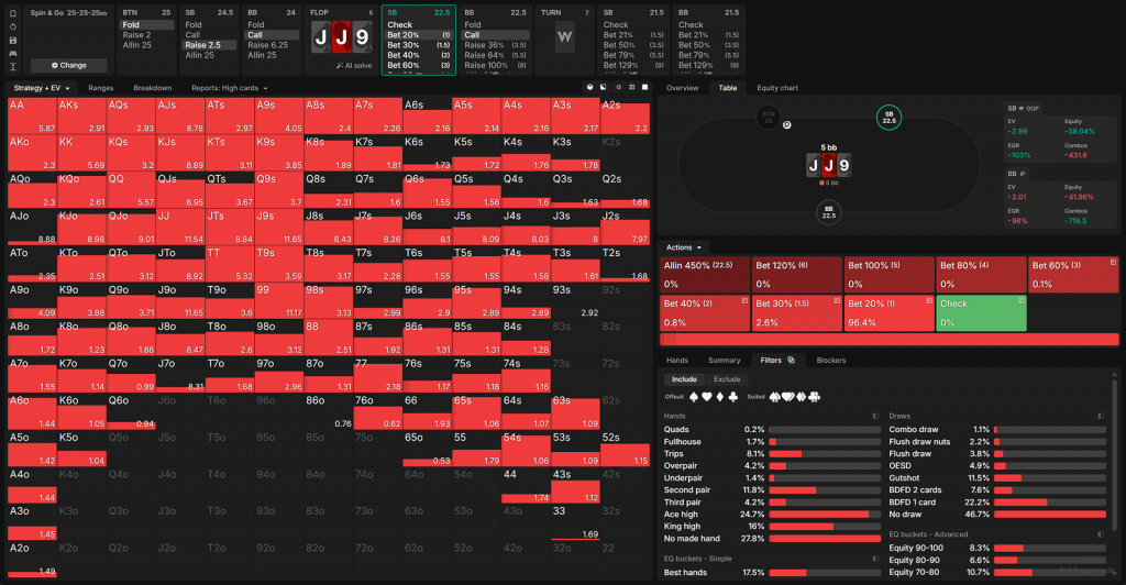 Играть без позиции (OOP) в Spin&Go сложно даже для самых опытных игроков. Без четкого понимания того, какие сайзинги использовать на флопе, мы придем на терн/ривер и потеряемся в раздутых банках. Это вызовет множество ошибок и, скорее всего, неуверенность.