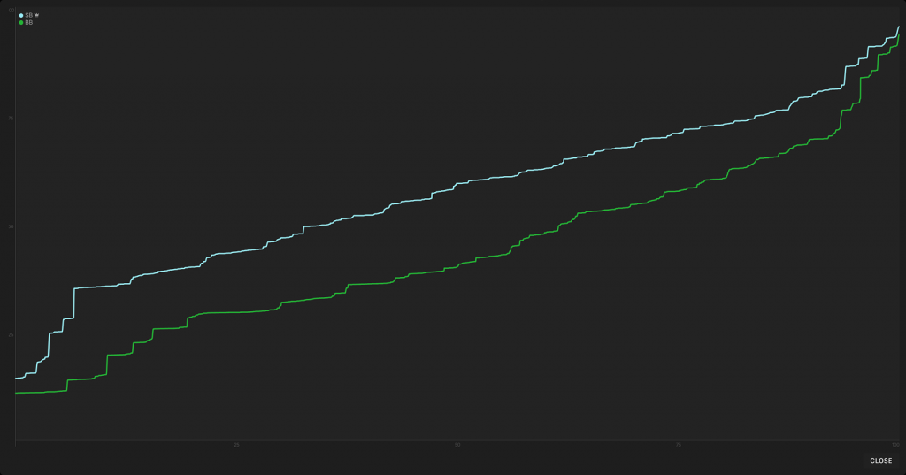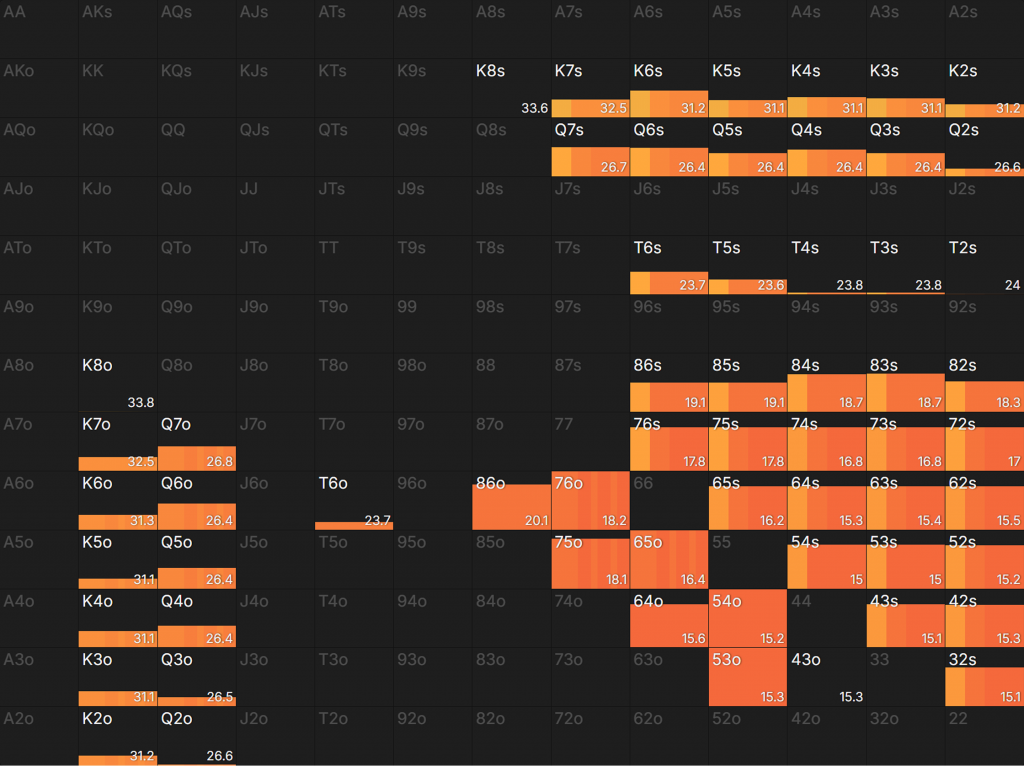 - Да! Более 60% как диапазона SB, так и BB не имеют пары, и более 30% не имеют пары и прямого дро.