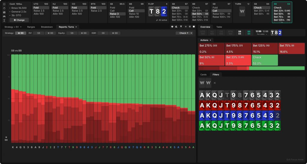 Стратегия конт-бета BB против SB на , SRP, 100bb, кастомное решение GTO: