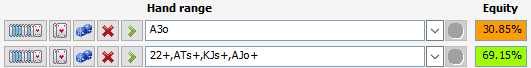 Против этого же диапазона у A3o на четверть меньше эквити: