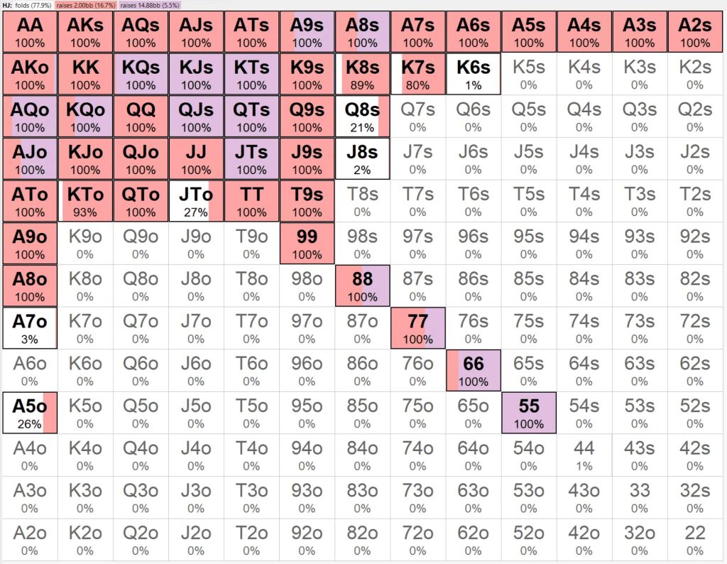 Итак, давайте теперь рассмотрим стратегии при глубине 15 больших блайндов.