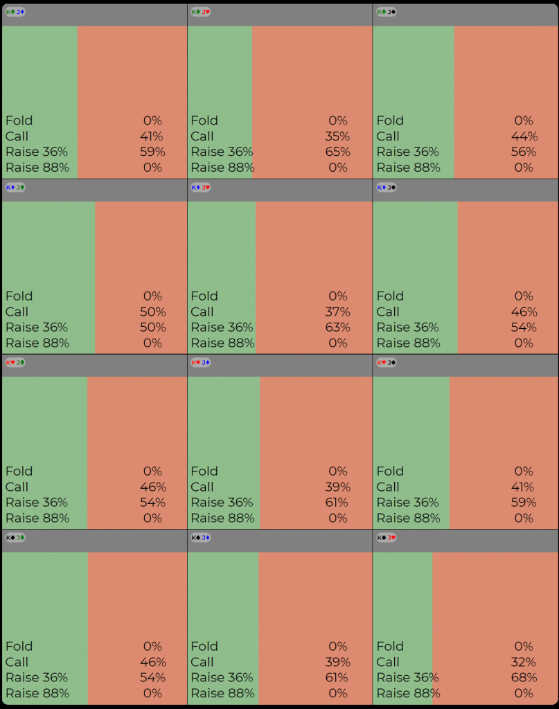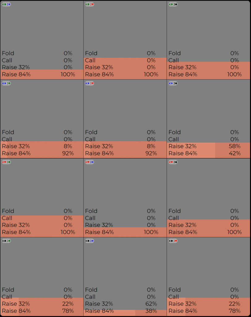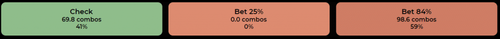 Примечание: Чек-рейз по-прежнему является доминирующим вариантов при розыгрыше топовой части вашего диапазона. Это необходимо для баланса и ваших блефов, поскольку некоторые из них могут недореализовать свое эквити, действуя пассивно. Помните, что если вы вообще собираетесь делать чек-рейз, ваш диапазон должен строиться вокруг верхней границы вашего диапазона.