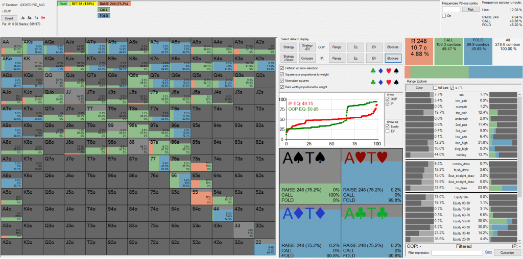 А вот версия с использованием функции node-lock, где мы лишь модифицировали его диапазон колла. В этой модели мы включили все Ax с двумя оверкартами к средней паре, все Kx с двумя оверкартами к средней паре и все карманные пары (в данном случае 22).