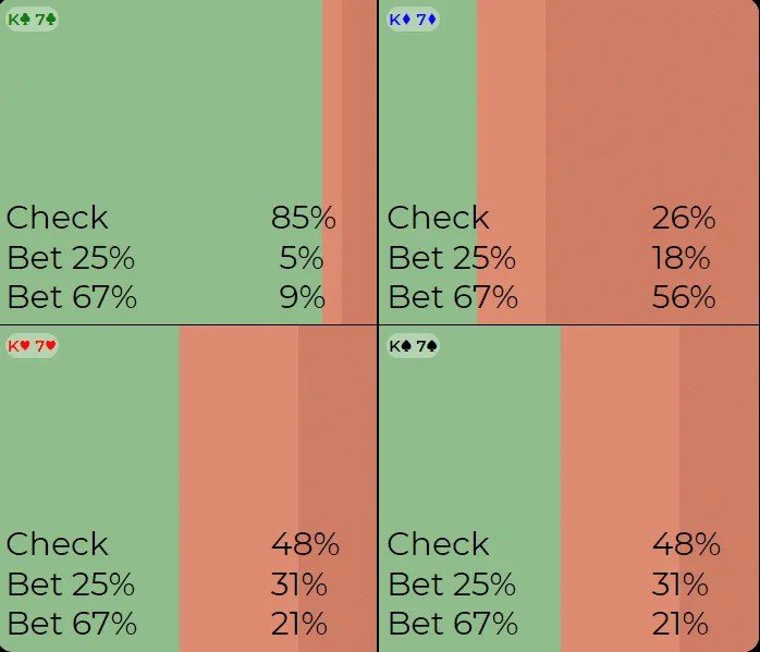 Они делают ставки со всеми этими топ-парами и неплохими дро, как это делал бы солвер? Скорее всего, ответ — нет. На этих текстурах ваши оппоненты будут иметь гораздо более сильные диапазоны чека, чем предполагает GTO.