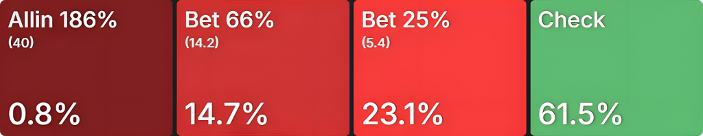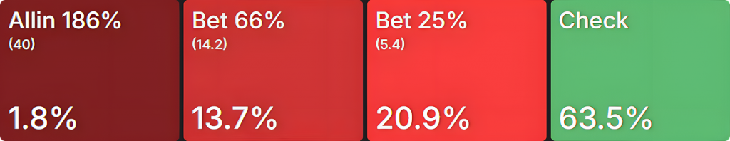 В симуляции ICM BB ставит примерно 56% своего диапазона, отдавая явное предпочтение ставке в четверть банка: