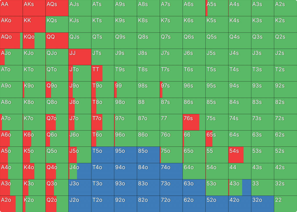 Однако симуляция Chip EV с использованием тех же префлоп-диапазонов, что и в симуляция ICM, дает очень похожую стратегию на симуляцию ICM.